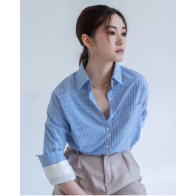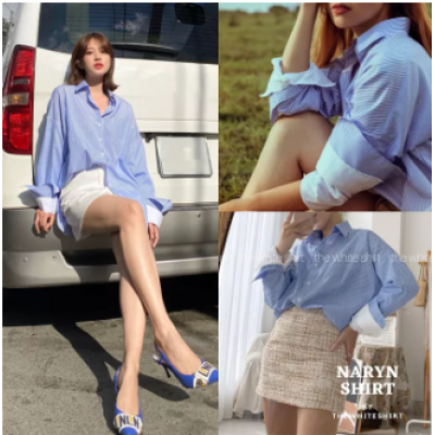 Home > Fggs Fashion Womens Clothing Set > Butt lifting denim pencil skirt > Narrow yn shirt-blue double sleeve stylish shirt