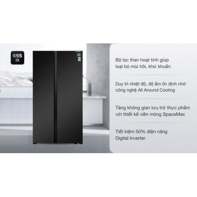 Tủ lạnh Samsung Inverter 655 lít RS62R5001B4/SV là một chiếc tủ lạnh mang gam màu đen đẳng cấp, thời thượng. Đi cùng kiểu dáng tủ lạnh side by Side 2 cửa mở rộng sang trọng, tủ lạnh không chỉ là điểm nhấn cho không gian nội thất mà nó còn giúp bạn thuận tiện trong việc quan sát, tìm kiếm và sắp xếp thực phẩm.