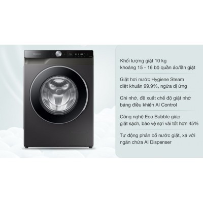 Samsung AI Inverter 10kg ww10t634dlx/VE washing machine has 8 featured washing programs commonly used: steam washing, saving washing 40 - 60 degree Celsius, fast washing 15 mins, quick wash 59 minutes, Cotton stuff, wool stuff, quick wash, Laundry cage cleaning and other 9 convenient programs (View details at specification chart) In there, 15-minute washing help you save time for your washing.