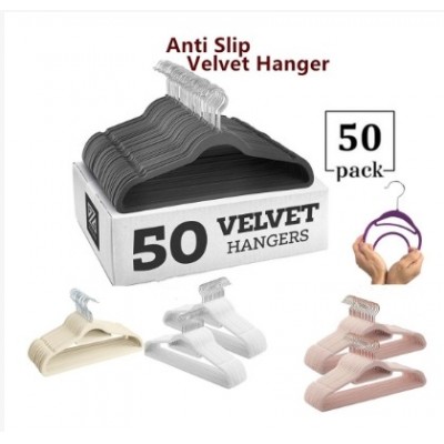 Home > daily supplies > SG Seller 50 Pcs Velvet Non-Slip Clothes Hanger/360 Degree Flexible Turning/Space saving/Ultra Thin