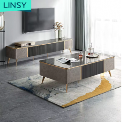 Home > daily supplies > Linsy American Style Modern Marble Square Storage Gold Metal Base Living Room Tv Unit And Coffee Tab